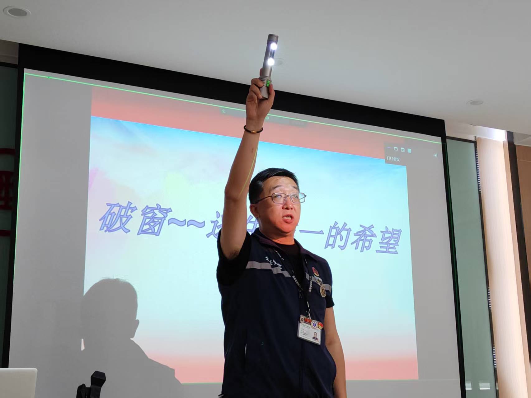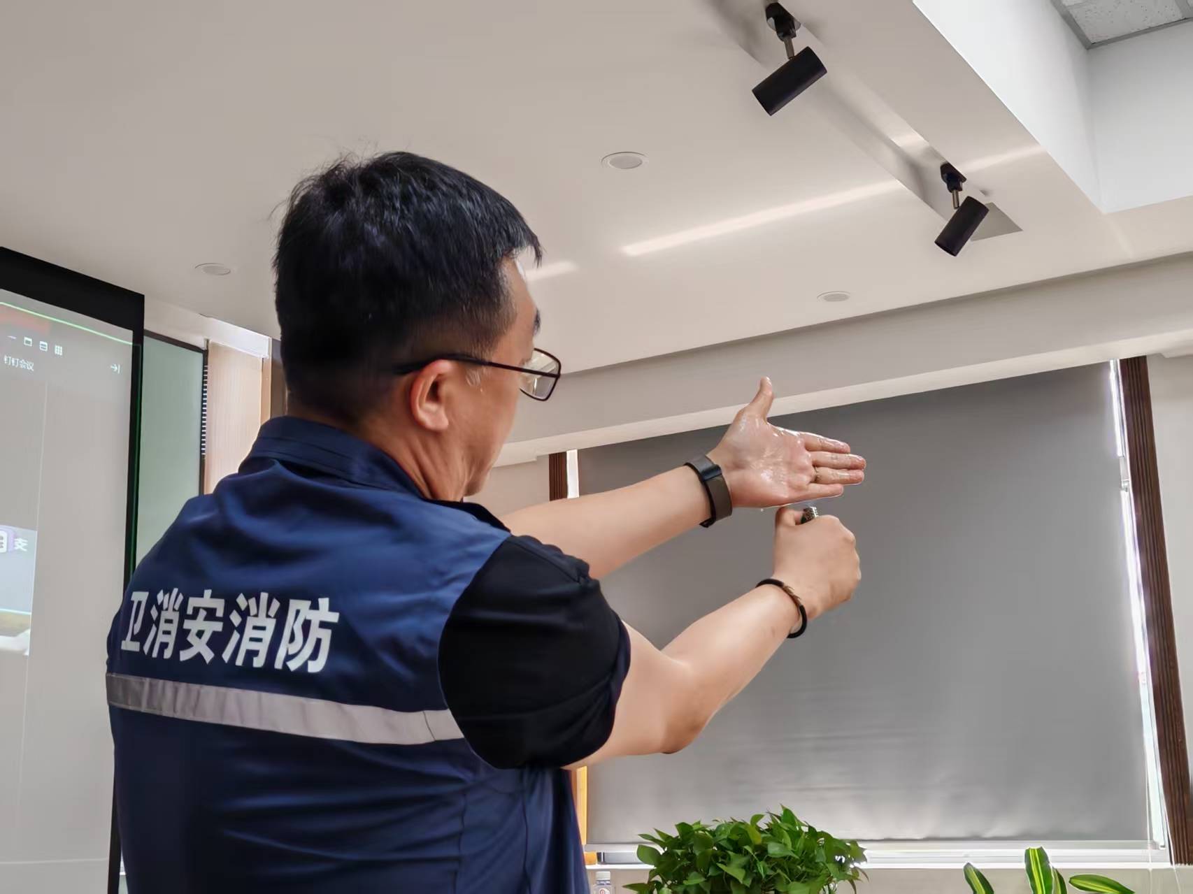 針對(duì)不同類型滅火器的適用場(chǎng)景,王軍講師進(jìn)行了清晰界定。通過(guò)播放火災(zāi)初期撲救成敗的關(guān)鍵視頻,他強(qiáng)調(diào)了“黃金三分鐘”內(nèi)正確使用滅火器的決定性意義。以普及最廣的干粉滅火器為例,講師現(xiàn)場(chǎng)示范并提煉出“提、拔、握、壓”四字操作口訣,化繁為簡(jiǎn),確保復(fù)雜流程人人牢記、關(guān)鍵時(shí)刻從容應(yīng)對(duì)。